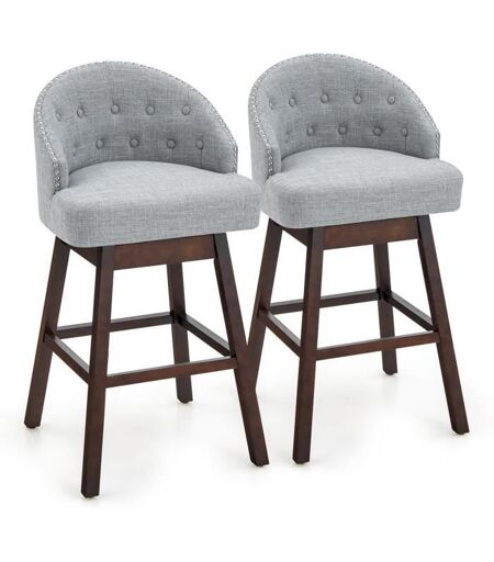 Costway Lot De 2 Chaises De Bar Pivotantes, 55 X 53 X 105 Cm, Avec Dossier Rembourré, Pieds En Bois D'hévéa, Charge Max.160kg, Gris