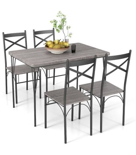 Costway Ensemble De Table À Manger 5 Pièces Avec 4 Chaises, Cadre En Métal, 110 X 70 X 76 Cm, Pour Cuisine, Coin Petit-Déjeuner