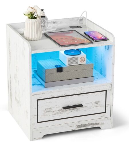 CostwayTable de Chevet Led Intelligente Port Usb Couleurs de Lumière et Luminosité Réglables Blanc