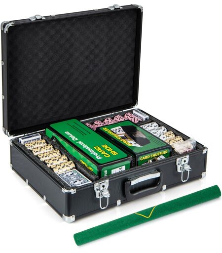 Profitez de votre temps de jeu avec notre ensemble de jetons de poker de casino ! Il est livré avec 600 jetons de qualité, 6 jeux de cartes, 5 dés, 3 boutons de croupier, 2 clés, 1 feutre de poker, 1 croupiers et 1 mélangeur de cartes, permettant à 4-10 personnes de se divertir. Les 600 jetons sont conçus avec 6 couleurs (blanc, jaune, rose, bleu, violet, vert) de différentes valeurs (1/5/25/100/500/1000). Et chaque jeton présente des motifs exquis, un diamètre de 4 cm et un poids de 14 g pour une expérience de casino réelle. De plus, la mallette compacte avec une poignée pratique assure un transport facile et un stockage peu encombrant. La mallette est équipée de 2 clés et 2 boucles de verrouillage. Attributs : 【Tout inclus :] 600 jetons, 6 jeux de cartes, 5 dés, 3 boutons de croupier, 1 feutre de poker, 1 Croupiers et 1 mélangeur de cartes sont tous inclus dans notre mallette. C'est une excellente option pour 4 à 10 personnes de 10 ans et plus pour profiter pleinement du temps de jeu. 【Jetons de poker de 14 grammes】Tous les jetons sont composés de 3 couches : une couche de film, une couche composite et une couche de fer. Chaque jeton pèse 14 g pour offrir une sensation de casino authentique. De plus, l'ensemble de 600 jetons comporte 6 couleurs différentes avec des nombres variés : blanc x 150, jaune x 150, rose x 100, bleu x 100, violet x 50, vert x 50. 【Mélangeur de cartes pratique】Notre mélangeur de cartes peut automatiquement mélanger pour gagner du temps. Grâce à des engrenages surélevés, il peut mélanger 2 jeux de cartes en 2,5 secondes, ce qui libère vos mains. Conseil : Il nécessite 4 piles AA, non incluses. 【Cartes de jeu de qualité】6 jeux de cartes sont en plastique, imperméables et durables. De plus, l'ensemble de poker est livré avec un croupiers de grande capacité pour bien organiser toutes les cartes de jeu. 【Facile à transporter et à ranger】Matériau en aluminium durable, doublure douce et boucles de verrouillage fonctionnelles maintiennent tous les accessoires en sécurité. La poignée facile à saisir vous permet de déplacer facilement tous les accessoires, afin que vous puissiez jouer aux cartes avec votre famille et vos amis à tout moment et en tout lieu. La taille compacte vous permet de le ranger dans n'importe quel coin. Caractéristiques : Contient tous les accessoires, tels que 600 jetons, 6 jeux de cartes, 5 dés, 3 boutons de croupier, 2 clés, 1 feutre de poker, 1 croupiers et 1 mélangeur de cartes Jetons standard de 14 g pour une sensation et un poids de casino réalistes Cartes de jeu de haute qualité pour une grande résistance à l'eau et une grande durabilité Grand croupiers pour contenir 6 jeux de cartes Mélangeur de cartes automatique pour un mélange rapide et uniforme Mallette de voyage avec serrure et poignée pour un rangement sûr et un transport facile Idéal pour le Texas Holdem, le blackjack, les tournois, les rencontres quotidiennes, les clubs de cartes, etc. ...