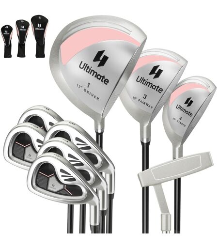 Costway9 Pièces Clubs de Golf pour Femmes Droitière Driver en Alliage Rose