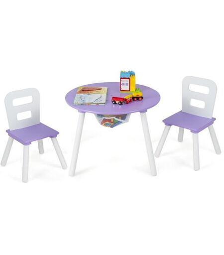 Costway Ensemble Table Enfants Avec 2 Chaises, Pochette De Rangement En Filet, 59,5 X 59,5 X 43,5 Cm, Pour Étudier, Manger Et Jouer