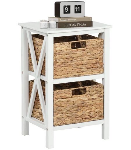 Matériel : Bois d'acacia, Bois de caoutchouc, Herbe marine, MDF Dimensions globales : 36 x 30 x 57 cm (L x l x H) Dimensions du panier : 27,5 x 27,5 x 17 cm (L x l x H) Capacité de poids du dessus : 90 kg Capacité de poids de chaque étagère : 35 kg Capacité de poids totale : 160 kg Cadre en bois massif et design en forme de X Convient pour le salon, la chambre, l'armoire, le hall d'entrée ...