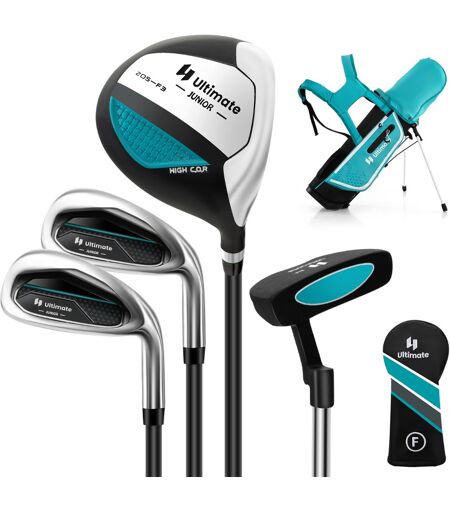 CostwayEnsemble Complet de Clubs de Golf Junior pour Enfants Âgés de 5 à 7 Ans Fairway #3 Fers #7 et #S et Putter Sac Trépied avec Capuche Anti-pluie Bleu