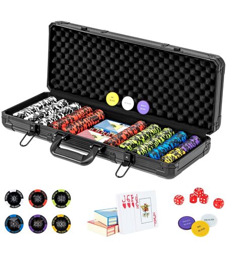 CostwayMallette de 500 Jetons de Poker Texas Hold em de 14 G Étui en Aluminium Jeux de Cartes 3 Jetons Dealer 5 Dés pour Casino Rassemblements Noir