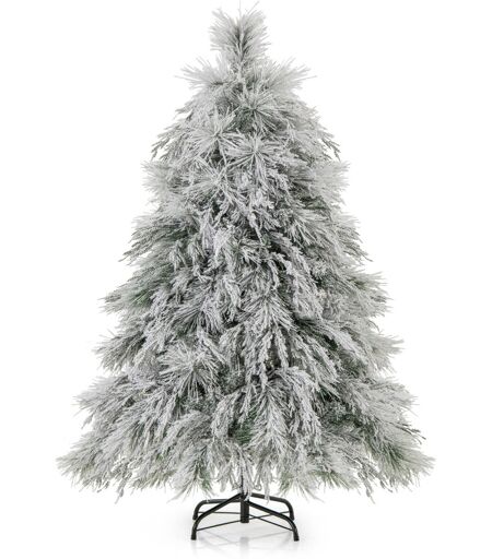 CostwaySapin de Noël Artificiel Floqué à Charnières Lumières LED Blanc Chaud Pointes de Branche Aiguilles de Pin Feuilles de Saule 146cm