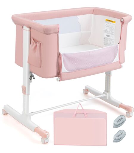 Gardez votre bébé à vos côtés avec ce lit pour cododo pour bébé 3 en 1 ! En plus de servir de lit pour cododo, ce lit pour cododo peut également servir de berceau ou de couffin pour bébé. Avec une hauteur réglable sur 5 niveaux, le lit pour cododo convient aux lits des parents de différentes hauteurs. L'inclinaison de 10° peut empêcher votre bébé de renverser du lait. Et le matelas confortable ainsi que la bordure douce pour la peau assurent confort et sécurité. De plus, vous pouvez aussi voir si votre bébé va bien grâce aux mailles respirantes. Les roues mobiles et verrouillables vous permettent de déplacer facilement ce lit de chevet et de rester stable lorsqu'il est à l'arrêt. De plus, la conception à glissière facilite le nettoyage quotidien. Attributs : 【Design convertible 3 en 1】Ce berceau pour cododo pour bébé combine le mode lit pour cododo, le mode berceau et le mode couffin pour bébé 3 en 1. La conception convertible 3 en 1 peut répondre à différents besoins. Par conséquent, les parents peuvent toujours avoir leur nouveau-né à côté d'eux même s'ils sont occupés par d'autres choses. 【Hauteur et angle réglables】Afin de s'adapter aux lits de différentes hauteurs, ce lit de bébé portable est construit avec des hauteurs réglables à 5 positions. Chaque côté de notre barrière de lit peut être ajusté verticalement et indépendamment, ce qui vous permet de mettre facilement le bébé au lit, de le sortir du lit ou de le tenir au lit. 【Lit pour cododo mobile et portable】Le lit de bébé dispose de 4 roues inférieures lisses avec freins. Ainsi, il est facile de déplacer ce berceau pour bébé à l'endroit souhaité. Plus important encore, avec un sac de voyage Oxford, vous pouvez transporter ce lit pour cododo lorsque vous êtes en voyage. 【Détails bien pensés】Ce berceau pour cododo pour bébé dispose d'une bordure douce pour la peau pour plus de sécurité et de mailles respirantes sur les 2 côtés pour la visibilité. Par conséquent, vous êtes en mesure de voir à tout moment si votre bébé va bien. En outre, il y a un matelas moelleux avec un matelas pour plus de confort et un sac latéral pour un rangement pratique. 【Assemblage et nettoyage faciles】Équipé d'instructions détaillées, ce lit pour cododo portable pour bébé n'est pas si difficile à installer. Vous pouvez l'attacher fermement à votre lit avec les sangles fournies. De plus, la conception à glissière facilite le nettoyage, offrant à votre bébé un lit de chevet propre et frais à tout moment. Caractéristiques : Librement converti entre les modes lit pour cododo, berceau et couffin Hauteurs réglables sur 5 positions adaptées aux lits de différentes hauteurs L'angle d'inclinaison scientifiquement étudié de 10° évite à bébé de renverser du lait Matelas moelleux avec planche offrant une expérience de sommeil confortable Matériaux sûrs et respectueux de la peau pour une utilisation sécurisée Maille respirante sur les 2 côtés pour observer si bébé va bien Très facile à nettoyer avec un design à glissière... ...