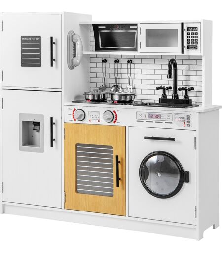 CostwayEnsemble de Cuisine pour Enfants avec Four Machine à Laver Micro-ondes Distributeur d'Eau Téléphone Sons et Lumières pour 3 Ans+ Blanc