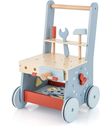 Le design unique 2 en 1 se transforme sans effort d'un trotteur de marche en un établi à outils animé, avec des jouets attrayants comme un tournevis, un marteau et une clé. Idéal pour développer les compétences de marche, il est doté d’une distance de 26,5 cm entre les roues arrière silencieuses et antidérapantes, pour garantir une marche droite et sûre. Il comprend une horloge et un trieur de formes, améliorant la reconnaissance et la coordination des couleurs. L'espace de rangement supplémentaire en dessous permet de garder les jouets organisés et à portée de main. Attributs : 【Conception Polyvalente 2 en 1】Ce ravissant trotteur pour bébé peut se transformer en un établi à outils dynamique pour enfants, qui comprend divers petits outils tels qu'un tournevis, un marteau et une clé. Un tel design 2-en-1 est parfait pour que les tout-petits puissent passer de la position debout à la pratique de la marche, et libérer la stabilité, l'imagination et la créativité. 【Trotteur Fonctionnel】Saisissez-le et avancez en toute confiance ! Le trotteur est conçu pour les tout-petits afin d'améliorer leurs capacités motrices. Avec une distance entre les roues arrière de 26,5 cm, il aidera les enfants à marcher dans la bonne posture et évitera les jambes arquées. 【Double Plaisir sur 2 Côtés】Découvrez l'excitation de tous les côtés ! Participez à un jeu pratique avec l'horloge sur le côté gauche, ou changez pour profiter du trieur de formes sur la droite. Les deux côtés amélioreront efficacement la reconnaissance des couleurs et la coordination œil-main des enfants. 【Sécurité de Haut Niveau】La sécurité est notre priorité absolue. Fabriqué avec soin, le trotteur présente des bords lisses et arrondis et une poignée en bois massif qui donne la priorité à la sécurité de votre enfant. De plus, il est doté de 4 roues rembourrées en caoutchouc antidérapantes et silencieuses pour une grande stabilité. 【Espace de Stockage Supplémentaire】Rangez les jouets ! Notre trotteur comprend un bac de rangement en dessous, parfait pour ranger des jouets et des objets artisanaux. Gardez tous les favoris de votre enfant à portée de main pour une aventure à tout moment ! Caractéristiques : Peut être transformé d'un trotteur pour bébé en un banc de jeu pour enfants Livré avec plusieurs mini-outils pour libérer la créativité des enfants Une distance entre les roues arrière bien conçue, aide les enfants à apprendre à marcher correctement Jolie horloge et trieurs de formes sur les 2 côtés pour plus d’amusement Jouer en toute sécurité avec des bords lisses et arrondis Les roues rembourrées en caoutchouc réduisent le bruit et les dommages au sol La base à 4 points assure une fondation stable L'espace de rangement inférieur rend les jouets bien organisés ...