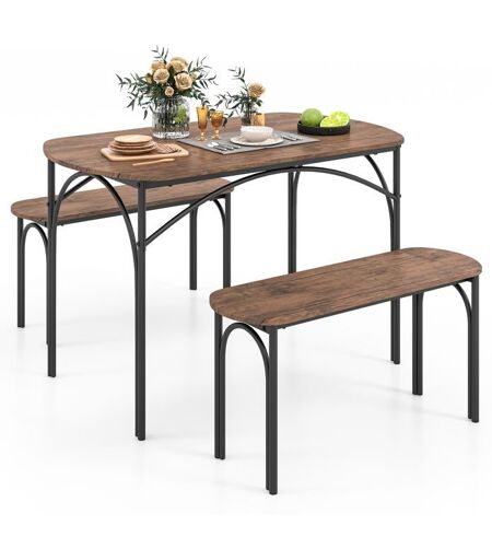 Costway Ensemble Table À Manger 3 Pcs Avec 2 Bancs Pour 4 Personnes, Coins Arrondis, Cadre En Métal, Pour Cuisine, Salle À Manger