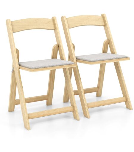 CostwayEnsemble de 2 Chaises de Salle à Manger Chaise de Cuisine Pliable avec Pieds en Bois d'Hévéa et Siège Rembourré Naturel