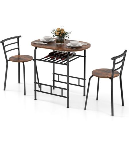 Costway Ensemble De Table Et 2 Chaises De Salle À Manger & Cuisine, Avec Casier À Vin, Cadre En Métal, 80 X 53 X 77 Cm, Marron