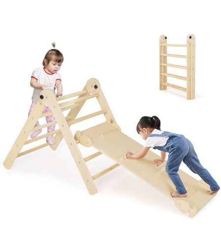 CostwayTriangle d Escalade Montessori Pliable avec Rampe Double Face Échelle Triangulaire avec Hauteur Réglable pour 3 Ans+ Naturel