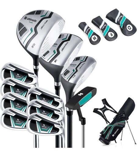 CostwayClubs de Golf pour Hommes Incluant Driver 460CC #1 Bois de Parcours #3 Hybride #5 Fers #5 #6 #7 #8 #9 #P #S Putter & Sac Trépied Vert