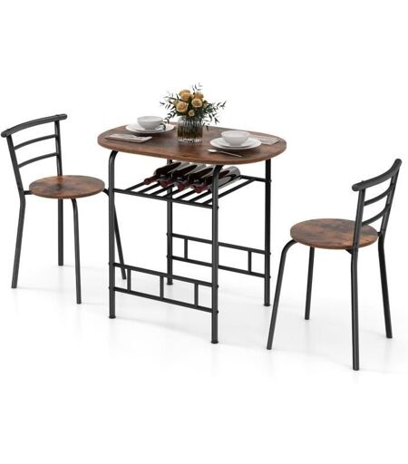 Costway Ensemble De Table Et 2 Chaises De Salle À Manger & Cuisine, Avec Casier À Vin, Cadre En Métal, 80 X 53 X 77 Cm, Marron