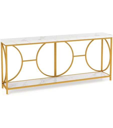 CostwayTable Console à 2 Étages avec Plateau en Faux Marbre Table Console Vtroite de 180cm Cadre en Métal Résistant Table Longue pour Canapé Blanc