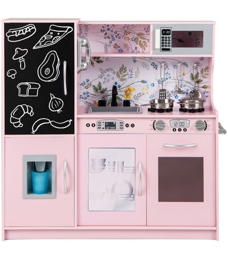Laissez les enfants grandir avec bonheur et santé grâce à notre cuisine de jeu d'imitation ! Ce jouet de cuisine pour tout-petits comprend un micro-ondes, un évier, des plaques de cuisson, une fabrique de glaçons, un lave-vaisselle et un four, offrant une expérience de cuisine immersive aux enfants. De plus, le tableau noir et le téléphone ajoutent du plaisir supplémentaire. Des sons réalistes sont disponibles en tournant les boutons. De plus, les enfants peuvent développer leur habileté pratique, leur imagination, leur créativité grâce au jeu de rôle. De plus, l'espace de rangement spacieux ainsi que les crochets pratiques et le porte-serviettes offrent de la place pour ranger divers objets de manière ordonnée. Il y a également des poignées intégrées pour faciliter l'ouverture. Pour créer un environnement plus sûr, vous pouvez fixer la cuisine pour enfants solidement au mur avec le dispositif anti-renversement fourni. Attributs : 【Expérience complète en cuisine】Les enfants peuvent écrire le menu du jour sur le tableau noir intégré. Ensuite, ils peuvent laver les ingrédients dans l'évier et les cuisiner sur les plaques de cuisson. Enfin, toute la vaisselle peut être placée dans le lave-vaisselle pour un nettoyage facile. Ainsi, une expérience de cuisine réaliste est possible. 【Zones supplémentaires simulées】Il existe plusieurs zones simulées pour encore plus de plaisir. Avec le micro-ondes et le four, plus de délicieux plats sont facilement accessibles. De plus, les enfants peuvent prétendre téléphoner et appuyer pour obtenir des glaçons avec la fabrique de glaçons. Et les boutons rotatifs avec des sons de "clic" sont intrigants. 【Matériau sélectionné et conception sûre】Fabriquée en matériau de haute qualité et sans BPA, cette cuisine de jeu d'imitation promet d'accompagner vos enfants dans leur croissance. Les coins et les bords arrondis sont adaptés à la peau délicate des enfants. Plus important encore, vous pouvez fixer la cuisine-jouet au mur avec le dispositif anti-renversement pour assurer la sécurité. 【Accessoires charmants et rangement】Cet ensemble de cuisine pour tout-petits est livré avec une poêle, une cocotte, des cuillères et une spatule, une tasse et des glaçons, ce qui apporte une grande commodité. Après utilisation, tous ces accessoires peuvent être rangés dans l'espace de rangement, aidant les enfants à développer de bonnes habitudes d'organisation. 【Cadeau amusant et éducatif pour les enfants】La cuisine de jeu d'imitation est un cadeau idéal pour les enfants de 3 à 6 ans. Ils peuvent jouer avec elle, et elle favorise l'amélioration de leurs compétences pratiques, de leur imagination et de leur créativité, de leur interaction parent-enfant et de leurs compétences sociales. Caractéristiques : Évier amovible et robinet rotatif et interrupteurs pour le plaisir simulé Tableau noir intégré et téléphone apportant une joie supplémentaire Plaques de cuisson avec ustensiles de cuisine et boutons rotatifs avec des sons pour l'opération... ...