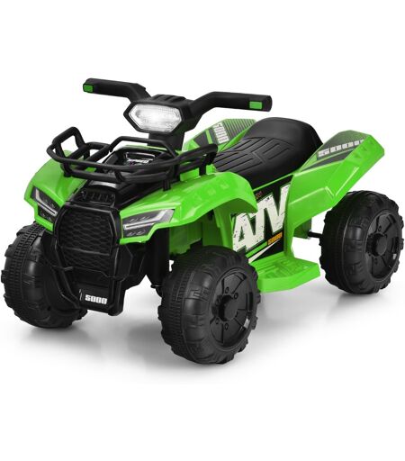 CostwayQuad Électrique Enfants avec 4 Roues Antidérapantes Musique Klaxon Lumière LED Guidon Lisse Boîte de Rangement Vert