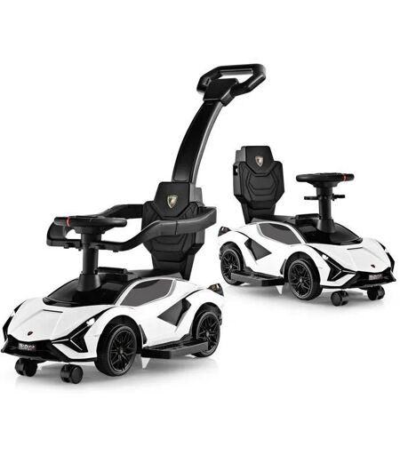COSTWAY Lamborghini Voiture À Pousser 3 En 1 Pour Enfants, Roues Universelles, Poignée Amovibles, Musique, Espace De Rangement, Blanc