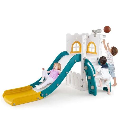 Toboggan 6 En 1 Costway Avec Panier De Basket Et Télescope, Marches Antidérapantes, Cadeaux Pour Garçons Et Filles Vert
