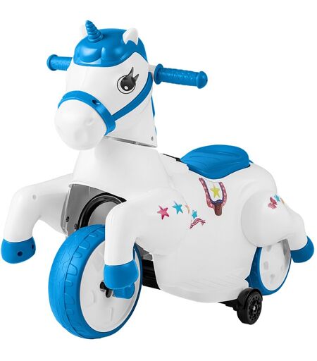 CostwayJouet à Chevaucher Licorne 12 V avec Roues d'Entraînement Musique Démarrage à un Bouton et Affichage LED Bleu