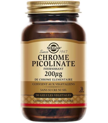 Solgar Chrome Picolinate 200 µg - Maintien Glycémie Hautement assimilable 90 gélules végétales Capsule(S) pc(s)