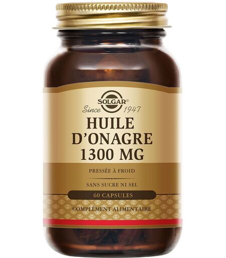 Complément alimentaire à utiliser dans le cadre d’une alimentation variée, équilibrée et d’un mode de vie sain.L’huile d’onagre Solgar est une source d’acide gamma-linolénique (GLA), un acide gras essentiel précieux de type oméga 6 (117 mg par capsule).L'huile d'onagre contribue à maintenir les tissus de la peau.Ce complément alimentaire a été élu meilleur complément alimentaire Beauté par le magazine Avantages en 2011.De plus, 3000 mg d'huile d'onagre par jour assurent un apport suffisant d'acides gras polyinsaturés pour l'équilibre hormonal.IngrédientsÉlaboré avec ces ingrédients : gélatine, glycérine végétale.Valeurs nutritionnellesChaque softgel fournit :Huile d’Onagre ..........................................................1300 mg fournissant :Acide Linoléïque ......................................949 mgAcide Gamma-linolénïque (GLA) ............117 mgEnveloppe de la Softgel ..............................................450 mg (gélatine, glycérine végétale)Conseils d'utilisationComme complément alimentaire pour adultes, une (1) softgel, ou plus si nécessaire, de préférence au repas, ou sur recommandation d’un thérapeute. Respecter le mode d’utilisation.Précautions d'emploiConserver loin d’une source de chaleur, de lumière ou d’humidité. A consommer avant le et lot N° voir sur le haut du flacon.Ne pas prendre en cas de grossesse sauf sur avis d’un thérapeute.Les produits Solgar® sont des compléments alimentaires, ils doivent s’inscrire dans le cadre d’une alimentation équilibrée et d’un mode de vie sain.Poids netFlacon de 60 softgelsAdresse du FabricantSolgar Vitamins14 rue de Berlin77144 MontévrainFrance ...