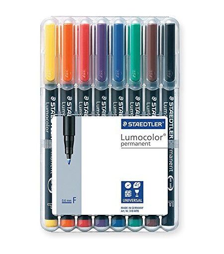 Staedtler Lumocolor Boîte De 8 Feutres Universels Permanents Couleurs Assorties Pointe 0,6 Mm Ps2