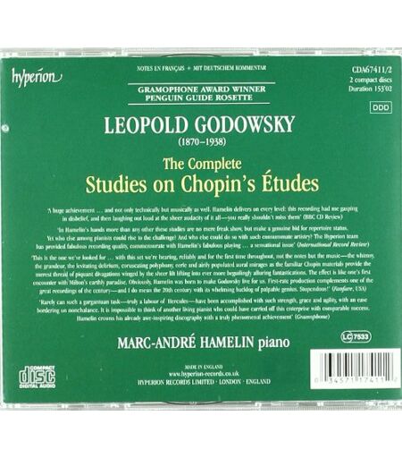 Brand : HYPERION RECORDS, Binding : Audio CD, Label : Hyperion Records (Note 1 Musikvertrieb), Publisher : Hyperion Records (Note 1 Musikvertrieb), NumberOfDiscs : 2, PackageQuantity : 1, Format : Doppel-CD, medium : Audio CD, publicationDate : 2001-04-02, releaseDate : 2000-04-14, artists : Marc-André Hamelin, composers : Leopold Godowsky, conductors : unbekannt ...