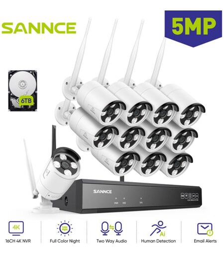 ANNKE Sannce Système de caméras de sécurité extérieures sans fil 5MP avec détection de présence par ia, compatible avec Alexa