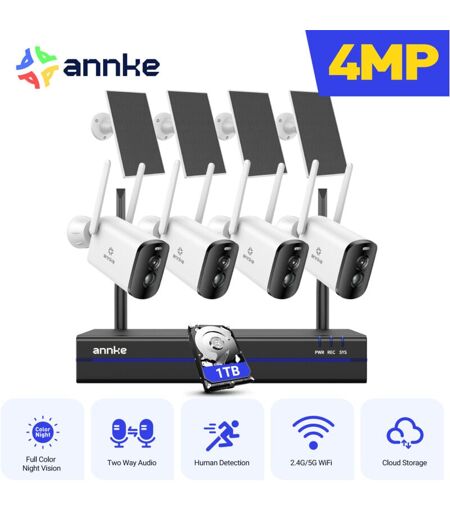SANNCE Annke Caméra de sécurité solaire sans fil 4MP avec détection humaine extérieure, vision nocturne couleur et audio bidirectionnel
