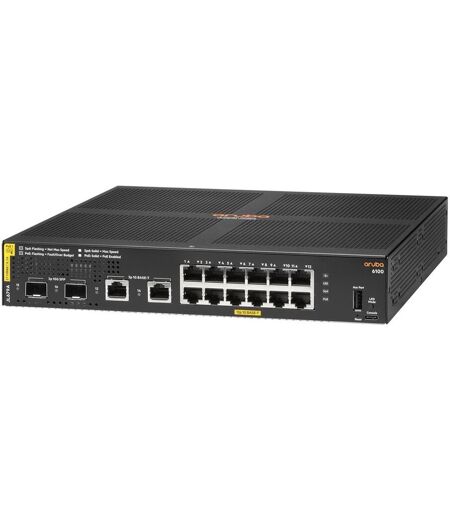 HPE Aruba 6100 12G Class4 PoE 2G/2SFP+ 139W Switch - Commutateur - Géré - 12 x 10/100/1000 (PoE+) + 2 x 1 Gigabit / 10 Gigabit SFP+ + 2 x 1000Base-T - Montable sur rack - PoE+ (139 W)