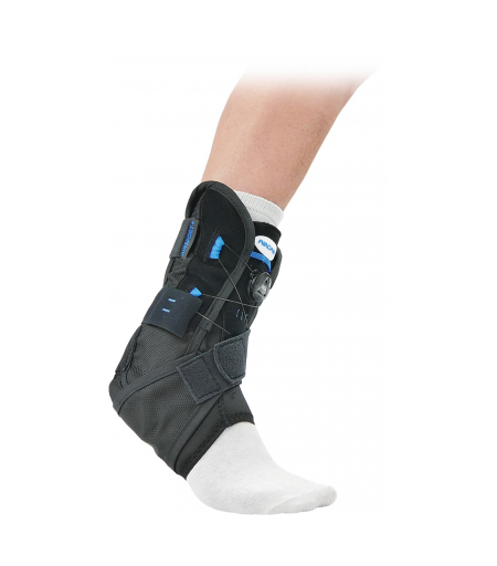• Phase aiguë de l’entorse de gravité moyenne (stade II) • Instabilités chroniques de la cheville. • Usage post-opératoire. • Prévention de la récidive lors d’activités de loisirs ou sportives. • Disponible en 5 tailles (de XS à XL). • Spécifier Droite ou Gauche. • Le système innovant BOA® permet au patient d’adapter le niveau de compression selon ses besoins. • Système nouvelle génération : ne se desserre pas si le système n est pas en position ouvert, garantissant un serrage constant dans le temps. • Les coques bilatérales de forme anatomique minimisent les risques d’inversion/éversion fournissant un excellent support médial et latéral pour les chevilles instables. • L’entrecroisement des lacets génère une compression uniforme sans créer de pics de pression. • La conception “Step-In” simplifie la mise en place en s enfilant par l arrière sans mouvement du cou-de-pied nécessaire. • Procure une stabilité supplémentaire au niveau de la pince bimalléolaire. • La sangle ATF (talo-fibulaire antérieure) limite tout mouvement d inversion hors limite physiologique tout en permettant un mouvement de marche libre. • Modèle Latéralisé ...