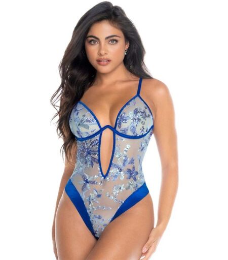 Laissez-vous envelopper par la délicatesse de ce body string en maille transparente bleue, où des motifs floraux brodés et ornementés de sequins semblent flotter sur la peau. Le bleu électrique des finitions souligne vos hanches grâce à son énergie vibrante. De plus, la transparence subtile révèle juste ce qu'il faut pour éveiller la curiosité tandis que la découpe audacieuse à l'avant attire le regard, ajoutant une touche d'originalité. Composition : 93% polyester, 3% élasthanne ...