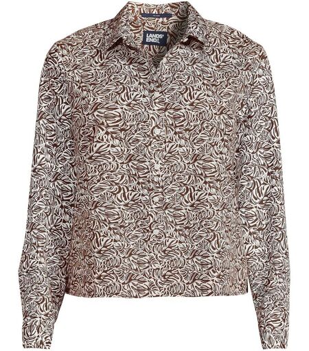 Lands' End Chemise à manches longues Lands' End No Iron raccourcie Marron Grand