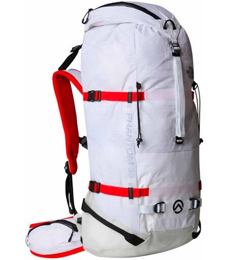 Le Phantom 38 White/Raw Undyed de la marque The North Face est un sac d'alpinisme idéal pour vos approches en ski ou escalade.Fabriqué en nylon recyclé associé au tissu Spectra®, ce sac est très résistant à l'abrasion, déperlant et ses matières légères permettent un confort optimal ainsi qu'une plus grande mobilité. Le panneau dorsal en mousse avec tissu Teksever résistant, léger et souple permet de réduire le poids ainsi que l'absorption de l'eau et de la neige.Ce sac technique est équipé de sangles latérales permettant de transporter vos skis, piolets et cordes ainsi qu'une ceinture et des poches pour ranger vos outils sans retirer le sac de votre dos. Son tissu est semi-transparent, ce qui donne l'avantage de voir l'intérieur sans avoir à ouvrir le sac. Enfin, sa réflectivité à 360° vous permettra une meilleure visibilité durant la nuit ou par faible luminosité.L'ensemble de ces caractéristiques font du Phantom 38 un sac complet et ultrarésistant, qui conserve sa légèreté malgré son espace de rangement volumineux. ...