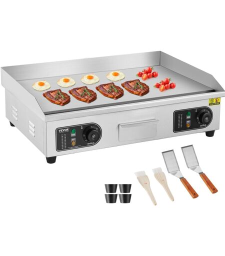 Vevor - Plancha Electrique 4000 w, Plaque a Snacker Commerciale Plate, Plaque de Cuisson en Fer et Inox, Temperature Reglable 50-300 °c, 2 Spatules