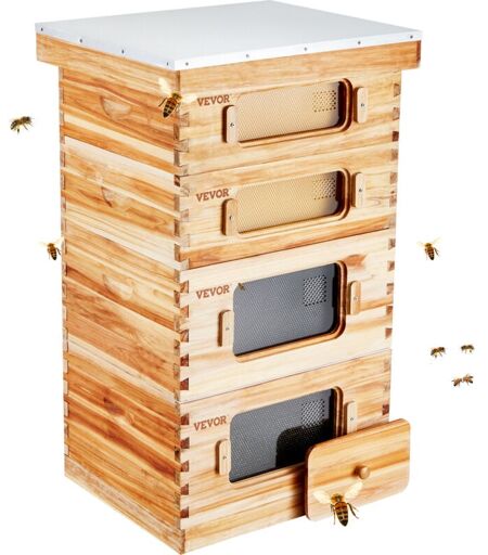 VEVOR Ruche deabeilles, 40 cadres, bois de cedre enduit de cire deabeille, 2 boites profondes 2 moyennes, kit ruche Langstroth, fenetres acrylique