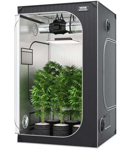 MOPHORN Vevor Tente de Culture 122x122x203 cm Chambre de Culture Hydroponique Mylar 2000D Hautement Reflechissante avec Fenetre deObservation, Sac a Outils,