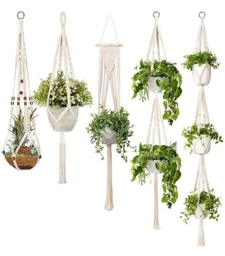 Lot de 5 Cintres de Plantes en Macramé - SODIAL - Différents Niveaux - Jardinière en Corde de Coton - Beige ...