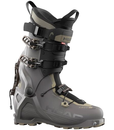 La Crux Dark Grey est une chaussure de ski de randonnée pour homme de la marque Head.Cette chaussure très polyvalente a été conçue pour limiter le poids à la montée et skier avec rigidité et précision en descente.Très confortable en montée, elle offre un débattement de 55° pour faciliter votre progression même dans les pentes très difficiles et se montre assez légère pour une bonne économie d'énergie.Sa languette souple vous offre un déroulement naturel du pied évitant ainsi des points de frictions inutiles pour vous préserver des premiers signes de fatigue.Son chausson thermoformable quant à lui reste stable et précis même lors de longues sorties avec beaucoup de dénivelé positif et maintient bien le pied avec son volume chaussant de 99 mm. On y retrouve aussi une semelle Vibram® apportant beaucoup d'adhérence et d'accroche pour les phase de marche et d'approche.Monter c'est bien, descendre c'est mieux ! C'est pourquoi une fois en haut il vous suffit de passer du mode marche à ski en actionnant le levier pour bloquer le dispositif et verrouiller à 14° +/- 2° la chaussure vers l'avant.Cette inclinaison associée à un flex de 120 vous apporte un équilibre très agréable entre précision et confort pour skier engagé à la descente. En résumé, la Crux c'est un peu le combo luxueux et passe-partout pour les skieurs qui cherchent la légéreté à la montée et l'engagement pour descendre ! ...