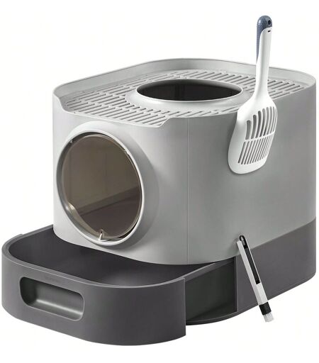 Feandrea Bac À Litière, Xxl, Avec Couvercle, Plateau Amovible, Pelle, Brosse, Moins De Traces, Fond Anti-Fuite, Gris Tourterelle Et Gris Ardoise