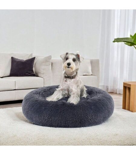 Feandrea Panier Pour Chien, Lit Ronde En Forme De Beignet, Canapé, Coussin Central Amovible Et Lavable, Tissu Peluche Doux, Ø70 Cm, Gris Foncé