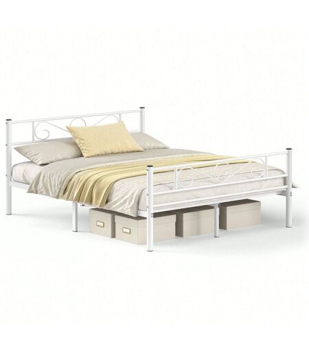 Vasagle Lit 2 Personnes 160 X 200 Cm, Structure De Lit En Métal, Montage Facile, Blanc