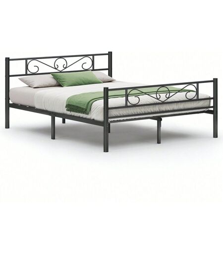 Vasagle Lit 160 X 200 Cm, Lit Double, En Métal, Pour Petits Espaces, Chambre D'amis, Chambre Ado, Noir