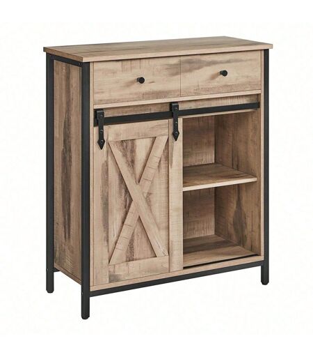 Vasagle Meuble De Rangement, Buffet, Avec Porte Coulissante, 70 X 30 X 80 Cm, Étagère Réglable, Style Campagnard, Marron Boisé Et Noir