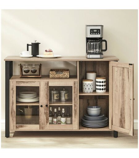 VASAGLE Buffet avec 3 Portes, 110 x 33 x 75 cm, Style Rustique, Marron Boisé et Noir