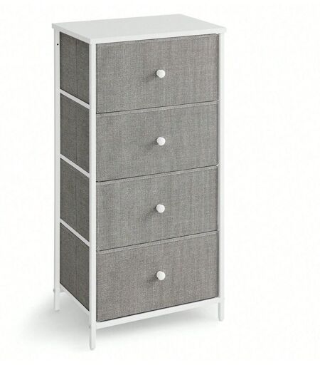 Songmics Commode, Meuble De Rangement Pour Chambre, Colonne De Rangement En Tissu Avec 4 Tiroirs, Cadre En Métal, Gris Clair Et Blanc