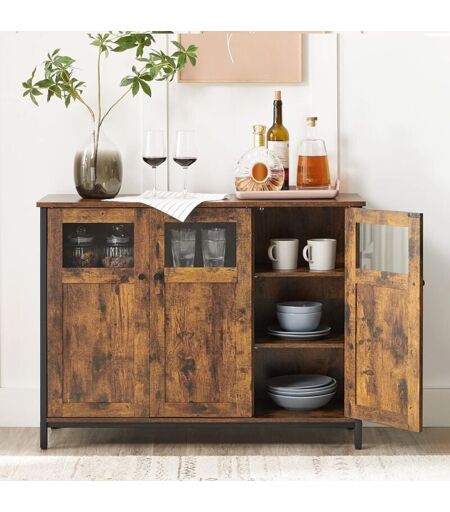 Vasagle - Buffet, avec Placard 3 Portes, 100 x 35 x 75 cm, Meuble de Rangement pour Salle à Manger, Cadre en Acier, Style Industriel, Marron Rustique