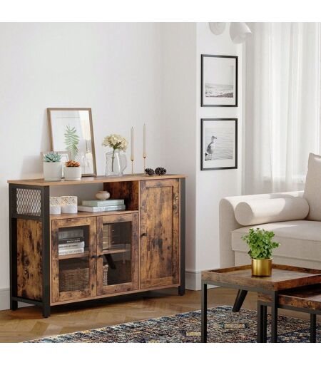 Vasagle Buffet Avec Placard 3 Portes, 110 X 33 X 75 Cm, Style Industriel, Marron Rustique Et Noir